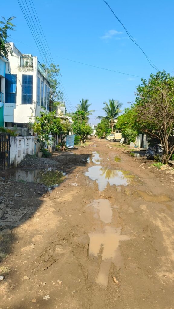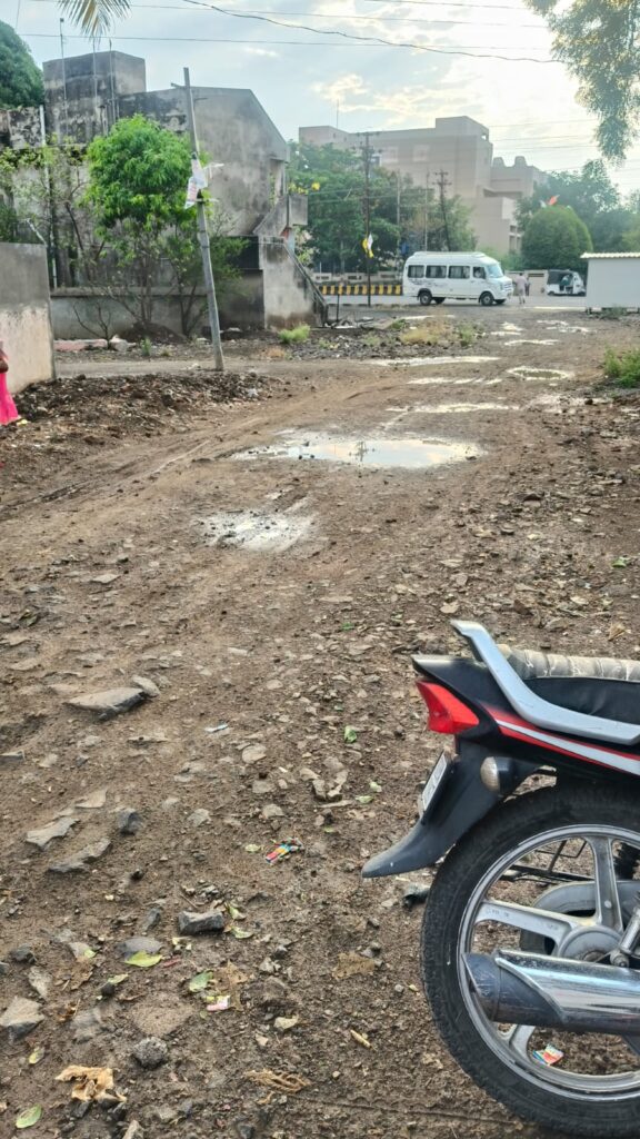 आज सकाळी मुलांना शाळेत सोडताना पालकांना मोठ्या अडचणींचा सामना करावा लागला. रस्त्यावर चिखल आणि खड्डे असल्यामुळे अनेक मुलांचे शूज चिखलाने भरले. काही ठिकाणी पाणी साचल्यामुळे रस्त्याचा अंदाज येत नसून नागरिकांना जीव मुठीत धरून प्रवास करावा लागत आहे.