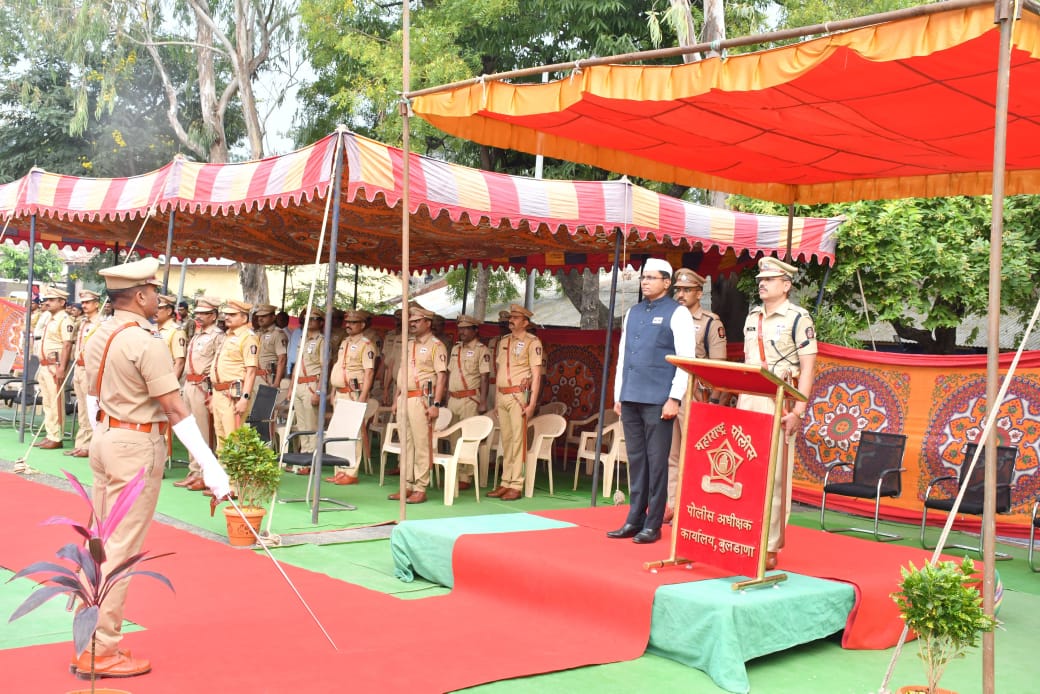 दरवर्षीप्रमाणे यंदाही 21 ऑक्टोबर रोजी पोलीस स्मृती दिन उत्साहपूर्वक आणि भावपूर्ण वातावरणात साजरा करण्यात आला. या निमित्ताने आज बुलडाणा जिल्हा पोलीस मुख्यालयात आयोजित कार्यक्रमात जिल्हाधिकारी किरण पाटील यांनी शहीद पोलीस जवानांच्या स्मारकाला पुष्पचक्र अर्पण करून त्यांना श्रद्धांजली वाहिली.