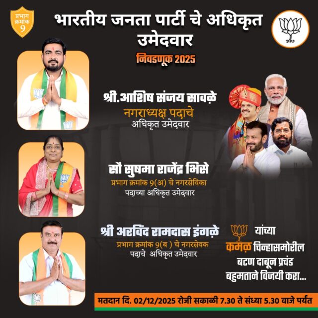 प्रभाग ९ मधील अनेक मतदारांनी संवादात सांगितले की, “या वेळेस विकास आणि स्थिर नेतृत्वाला प्राधान्य आहे. त्यामुळे भाजपचाच पर्याय योग्य वाटतो.” दुसरीकडे, विरोधकांचे अंतर्गत मतभेद आणि कमकुवत संघटनाही भाजपला फायद्याची ठरत असल्याचे राजकीय विश्लेषकांकडून सांगितले जात आहे.